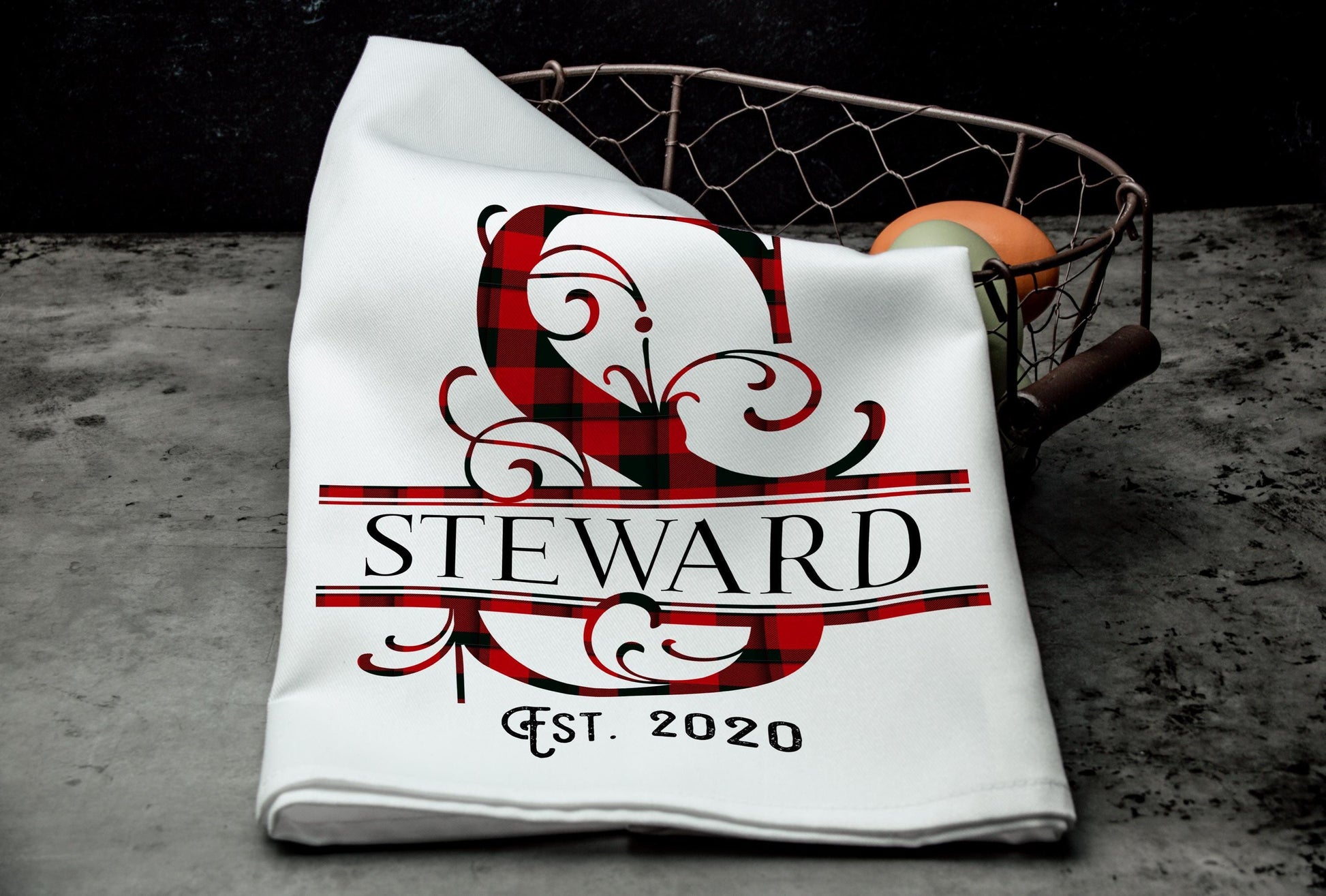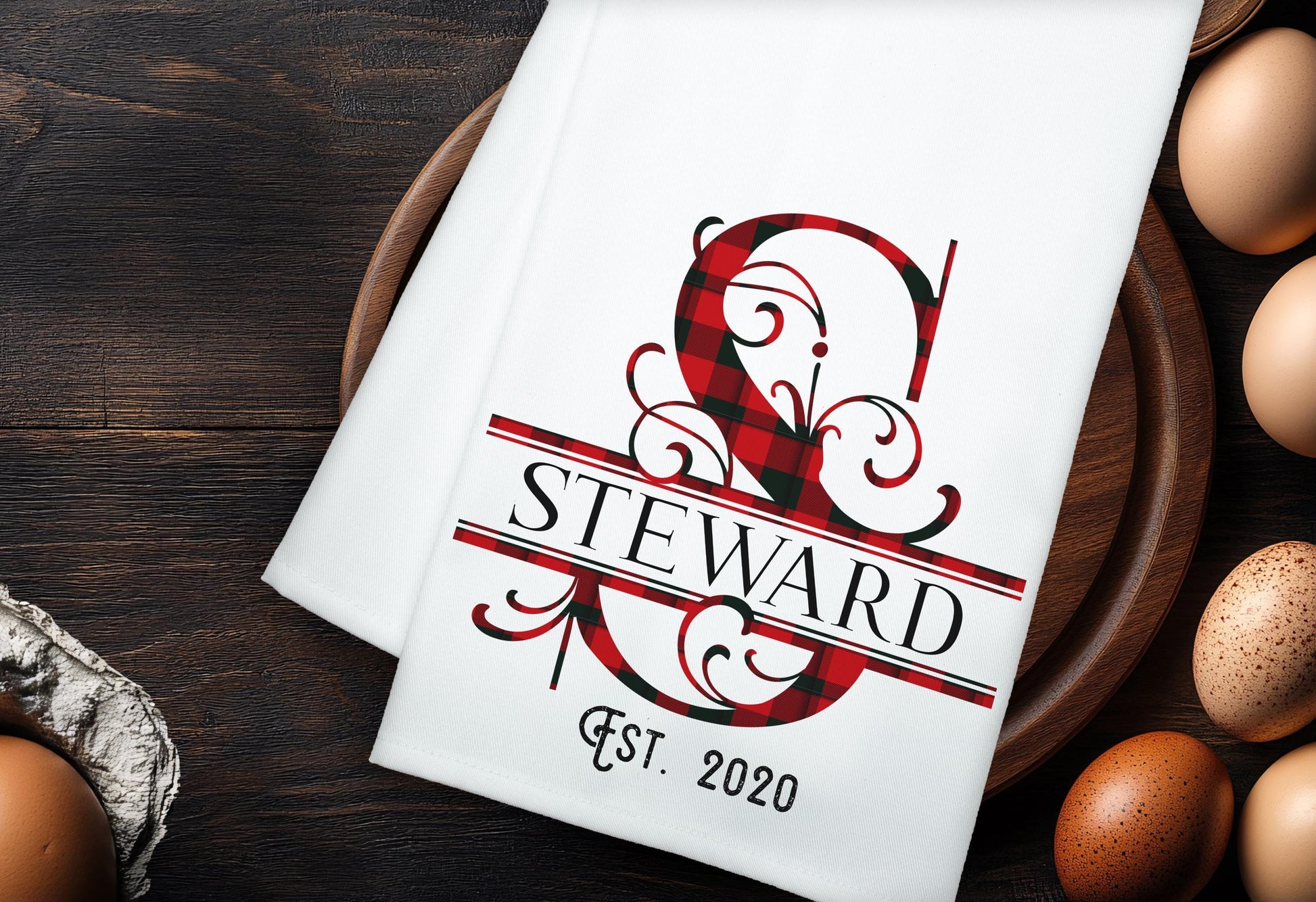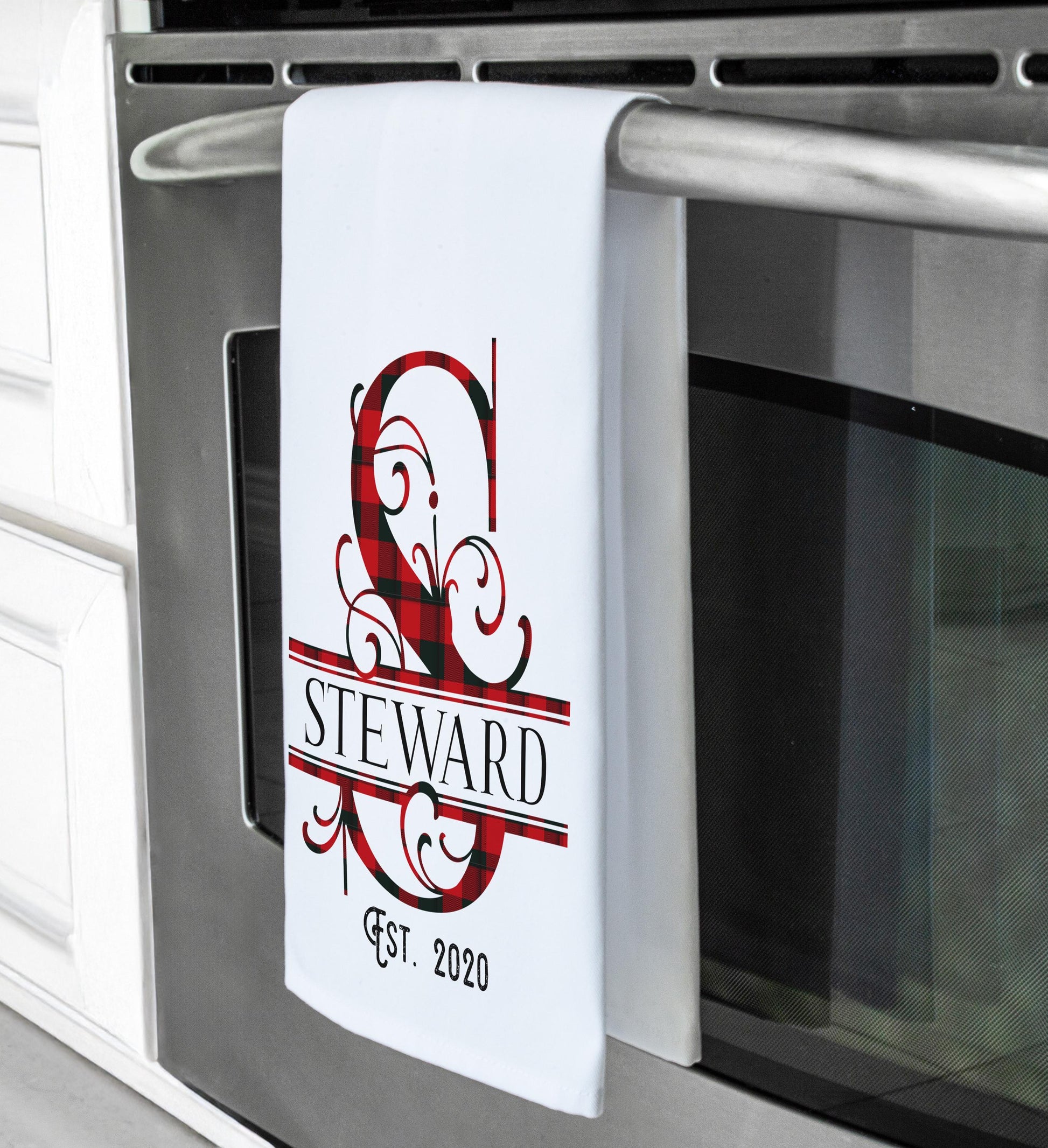 Personalized Christmas Tea Towel, Buffalo Plaid Kitchen Towel, Monogram Custom Tea Towel, Last Name Tea Towel, Kitchen Dish Towels