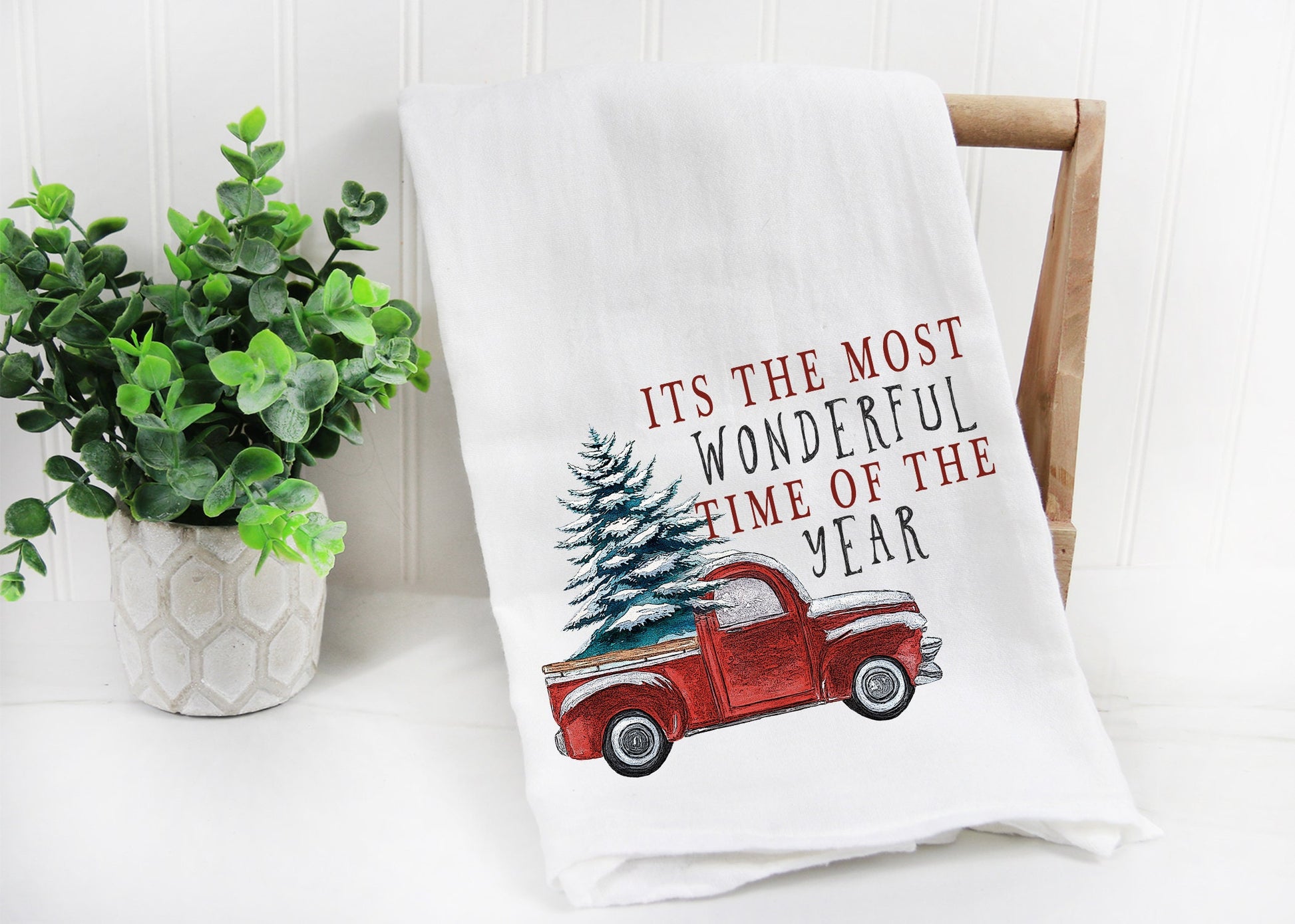 Tea Towel Most Wonderful Time of the Year Christmas Tree Flour Sack Tea Towel Decorative Kitchen Towel Kitchen Decor Decorative Towels